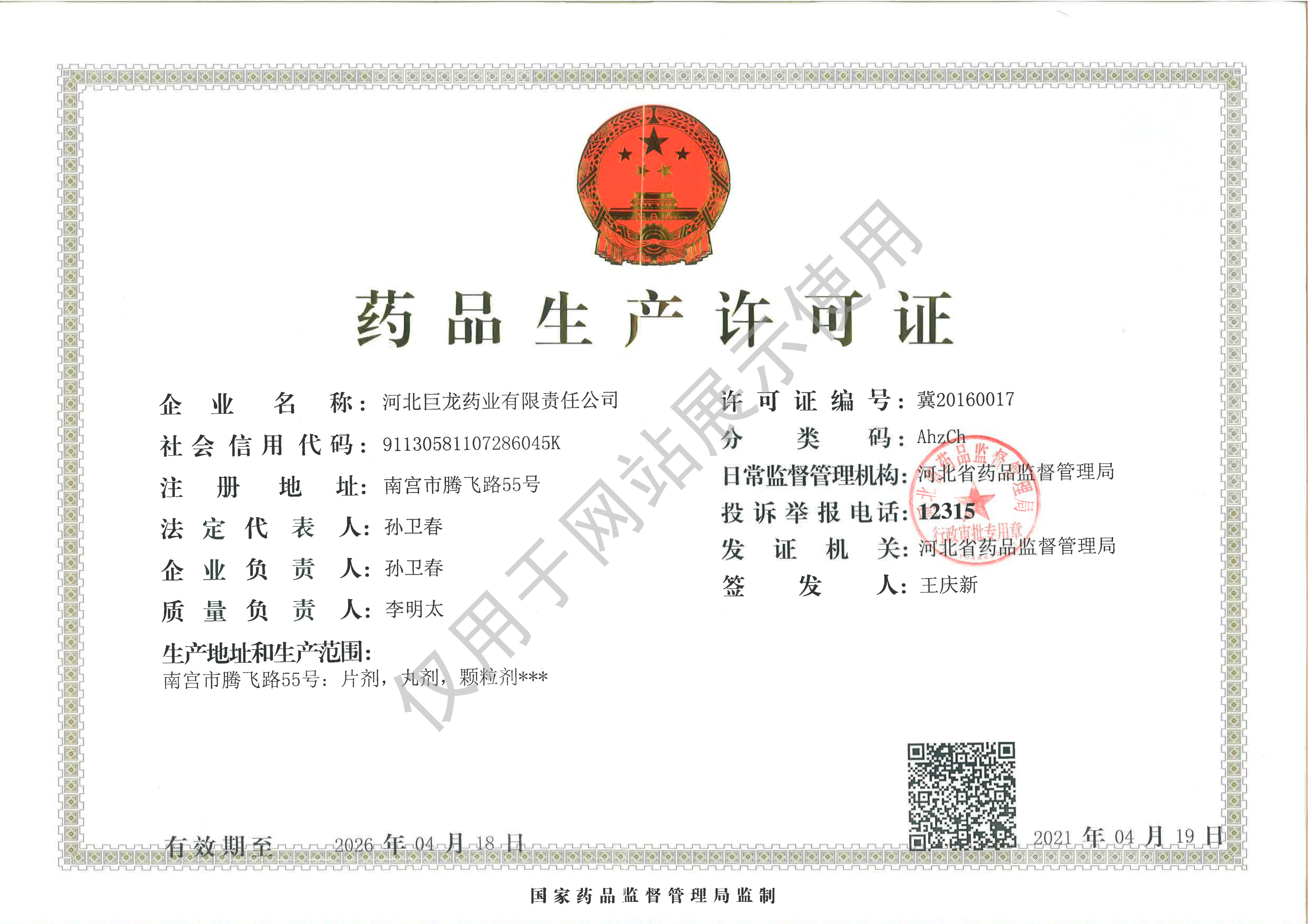 河北巨龍藥業(yè)有限責(zé)任公司,位于南宮市東部工業(yè)聚集區(qū),是一家集生產(chǎn)、銷售、科研為一體的中、西藥品生產(chǎn)企業(yè);是河北省醫(yī)藥行業(yè)協(xié)會主席團企業(yè)、省高新技術(shù)產(chǎn)業(yè)化示范企業(yè)、省誠信企業(yè)、省高新技術(shù)產(chǎn)業(yè)協(xié)會理事、省著名商標企業(yè),南宮市的一家藥品生產(chǎn)企業(yè)。其前身南宮市制藥廠,1973年建成并投產(chǎn),1996年依法破產(chǎn),1999年改制重建成股份制企業(yè)。2005年由河北鑫春建筑建材有限責(zé)任公司整體買斷收購,其后陸續(xù)注入資金2000多萬元,開發(fā)并上市了原國家中藥四類新藥(獨家品種)小兒清肺顆粒,被認定為省高新技術(shù)產(chǎn)業(yè)化示范基地。2015年企業(yè)通過新版藥品GMP認證。